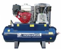 A range of receiver mounted, petrol, belt driven air compressors with free air delivery 11.2 to 29 cfm. This range has larger, slower running pumps giving lower noise levels and longer life expectancy for heavier duty applications.