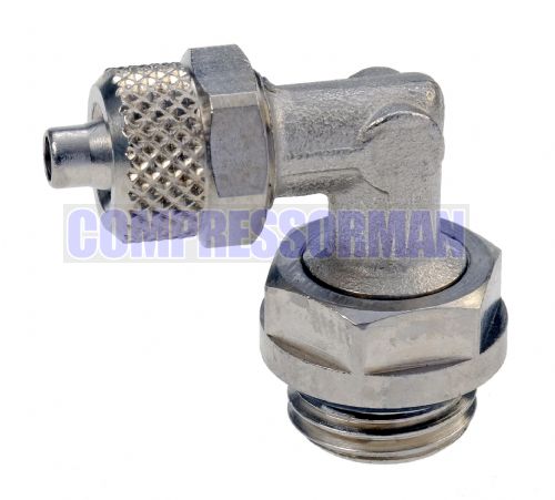 Quick or PushOn fitting - Swivel elbow with male BSP Thread made from nickel plated brass to suit tube sizes 6mm up to 10mm outside diameter.